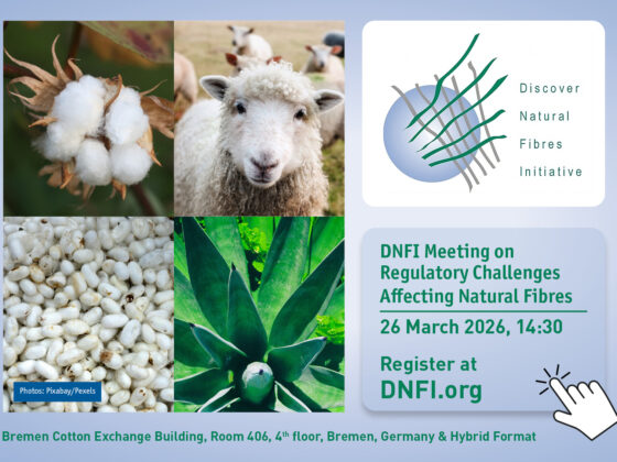 DNFI Meeting on Regulatory Challenges Affecting Natural Fibres https://cotton-conference-bremen.de/wp-content/uploads/2026/02/Naturfaserfotos-plus-Date-e.jpg 1600 1133 Cotton Conference Bremen https://cotton-conference-bremen.de/wp-content/uploads/2026/02/Naturfaserfotos-plus-Date-e.jpg26 March 2026, 14:30 to 16:30 Bremen Cotton Exchange Building, Room 406 , 4th floor, Bremen, Germany & Hybrid Format Against the backdrop of the International Cotton Conference Bremen, taking place from 25–27 March 2026, the Discover Natural Fibres Initiative…