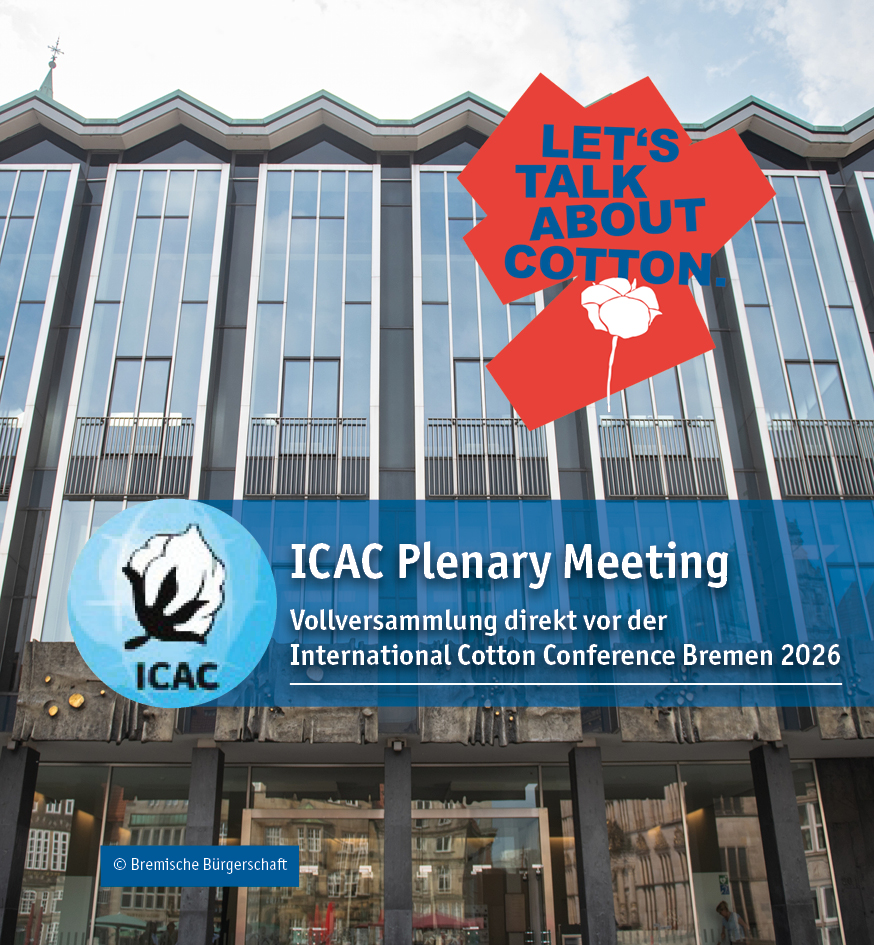 Das International Cotton Advisory Committee (ICAC) wird seine 83. Plenarsitzung am 23.-–24. März 2026 im Parlamentsgebäude in Bremen veranstalten. Die Tagung findet direkt vor der 38. International Cotton Conference Bremen (25.-27. März 2026) statt und markiert eine historische Premiere: Erstmals wird das ICAC-Plenum in enger Zusammenarbeit mit der Bremer Baumwollbörse und dem Faserinstitut Bremen e.V. (FIBRE) ausgerichtet.